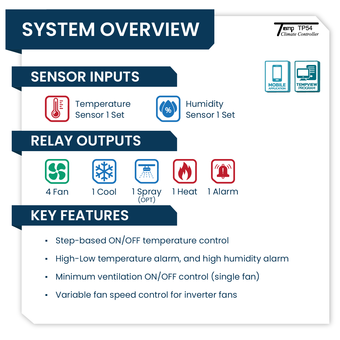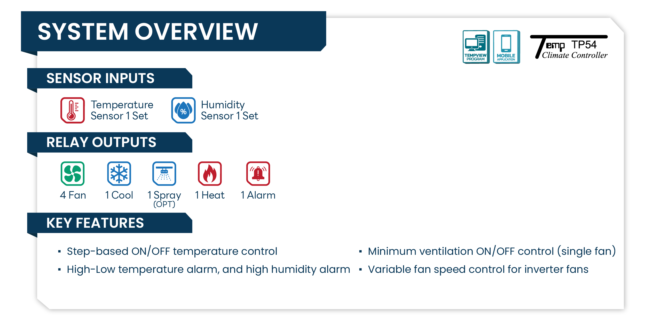 Built for efficiency, ease of use, and cost-effectiveness, Temp TP 54 is ideal for poultry farms, swine farms, and evaporative cooling (EVAP) systems.